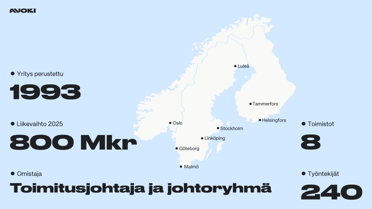 Avoki laajenee maantieteellisesti ja perustaa toimistot Ruotsiin, Norjaan ja Suomeen. Pohjoismaisen läsnäolon myötä ratkaisuja ja tukea tarjotaan siellä, missä asiakkaatkin ovat.